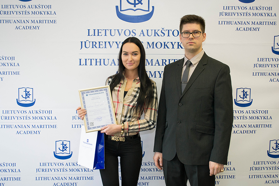 Šį kartą stipendija atiteko geriausiai rudens semestre studijavusiai „Jūrų transporto logistikos technologijų“ studijų programos studentei – pirmakursei Evelinai Raukytei.